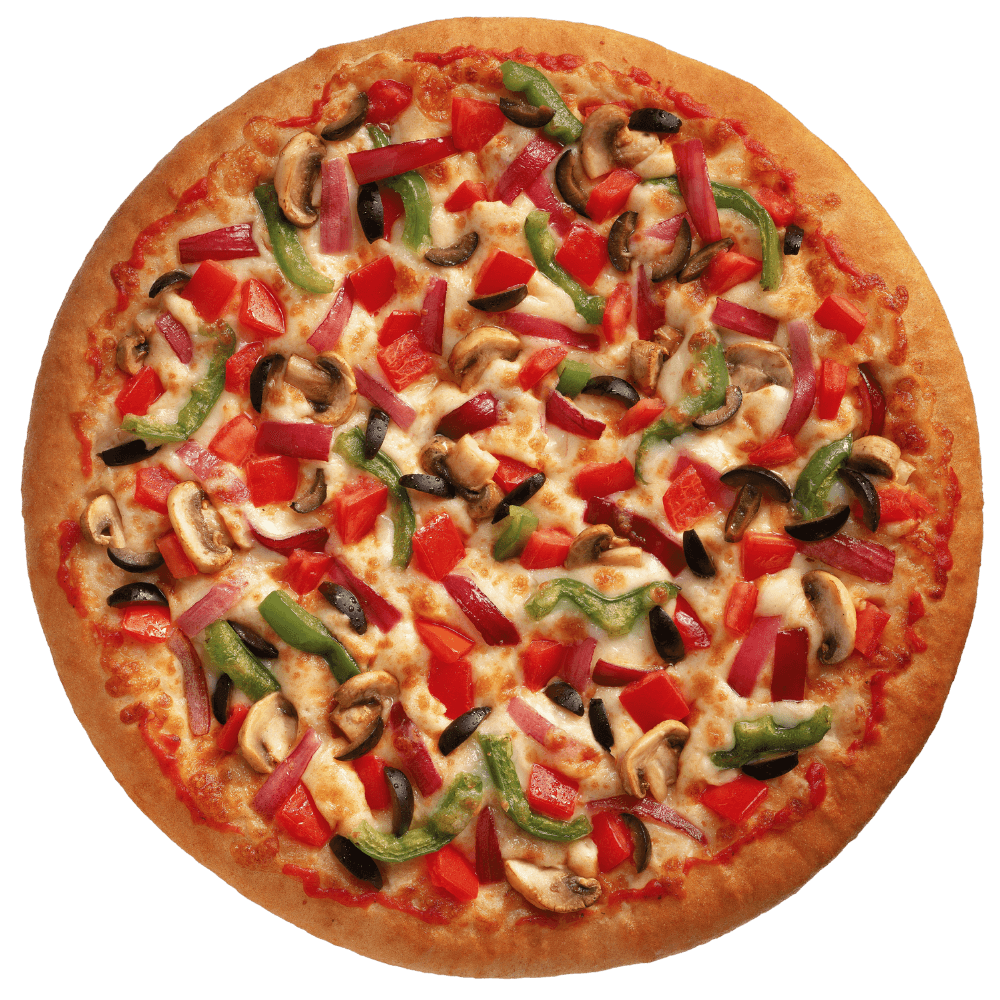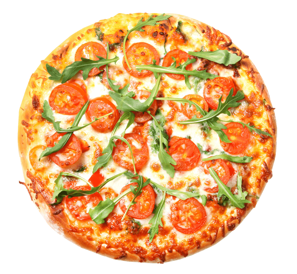 A classic pizza topped with fresh tomato sauce, mozzarella cheese, fresh basil, and a drizzle of olive oil.