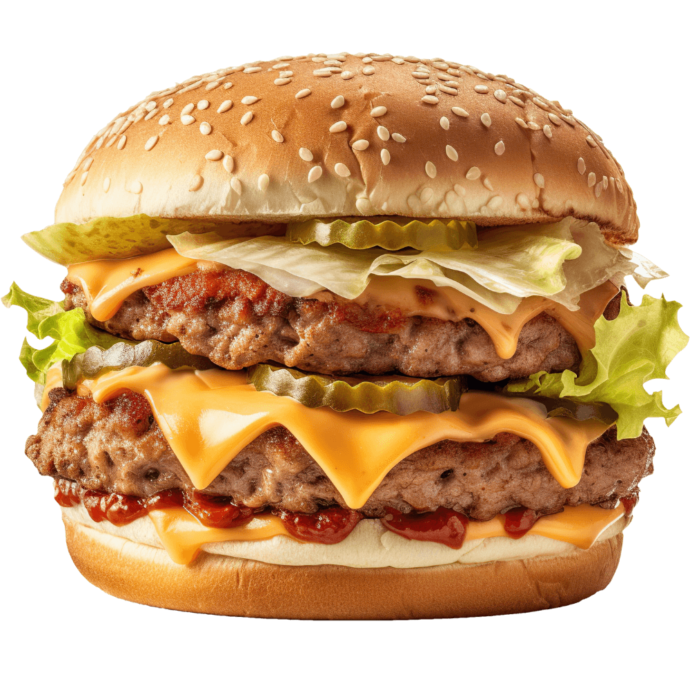 A lighter option with a grilled chicken patty, fresh mozzarella, tomatoes, basil leaves, and a balsamic glaze, creating a burger inspired by the classic Caprese salad.